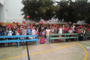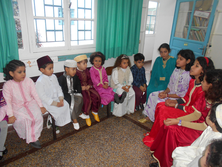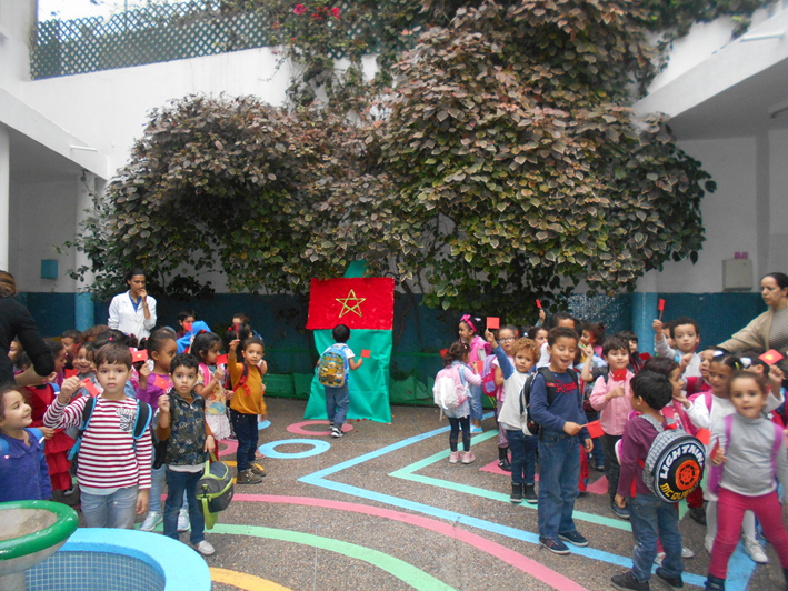 A l’occasion de la fête de l’Indépendance les élèves du primaire se sont rassemblés dans la cour de l’école pour réciter l’hymne national marocain.