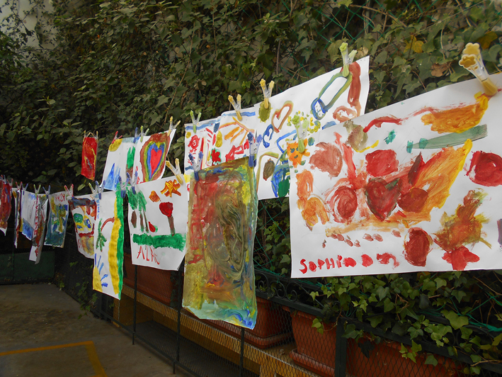 Peinture et pinceaux… des petits artistes qui découvrent à l’école talent et esprit créatif.