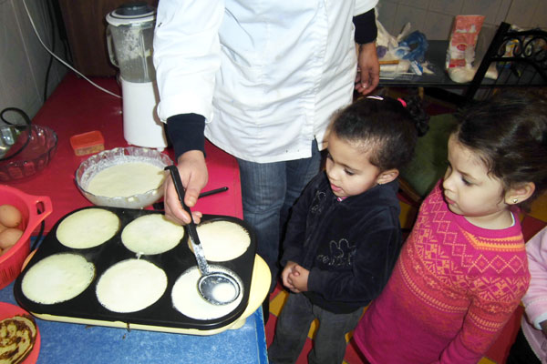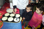 Nous avons fait des crêpes avec la maitresse dans l'atelier de cuisine, nous avons écouté la maitresse pour bien réussir nos crêpes