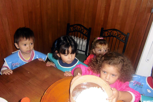 Nous avons suivi les instructions de la maitresse et observé attentivement la préparation du pain...