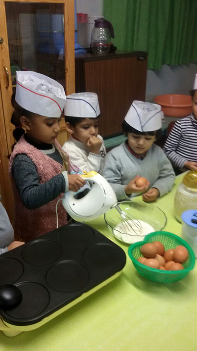 Nous avons préparé des gaufres avec la maîtresse : tous les enfants ont mis la main à la pâte. Nous avons dégusté nos gaufres avec une délicieuse boisson au chocolat.