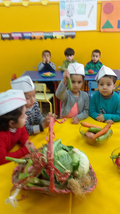 Nous avons préparé une soupe de légumes.. la carotte, la pomme de terre, le navet, le potiron, la courgette.. nous avons épluché et coupé les légumes.. et avec la maitresse nous avons bu notre délicieuse soupe !!